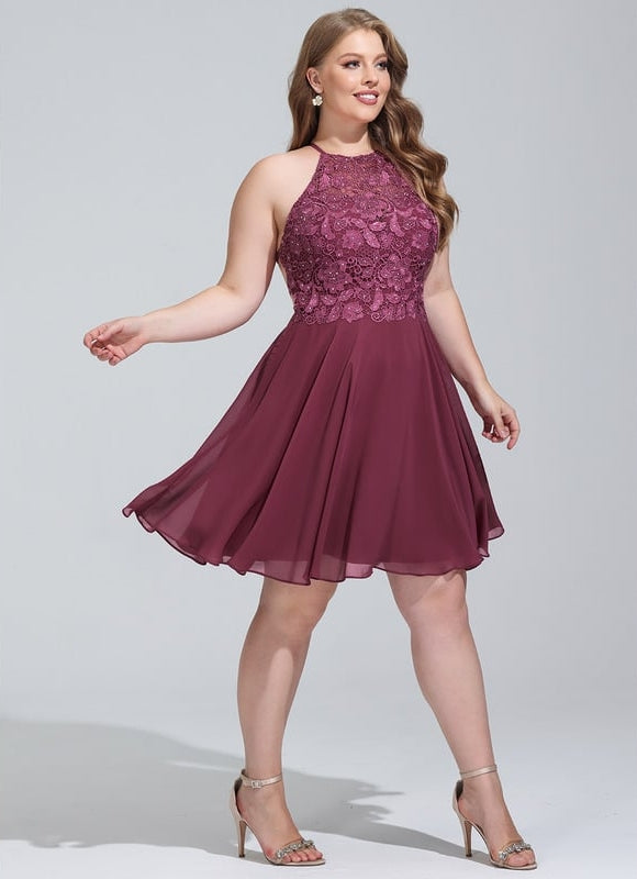 Pourquoi choisir cette Trapèze col rond longueur genou mousseline robe de bal de promo avec perles ?