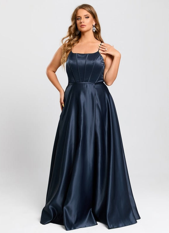 Découvrez notre sublime Trapèze col rond longueur ras du sol satin robe de bal