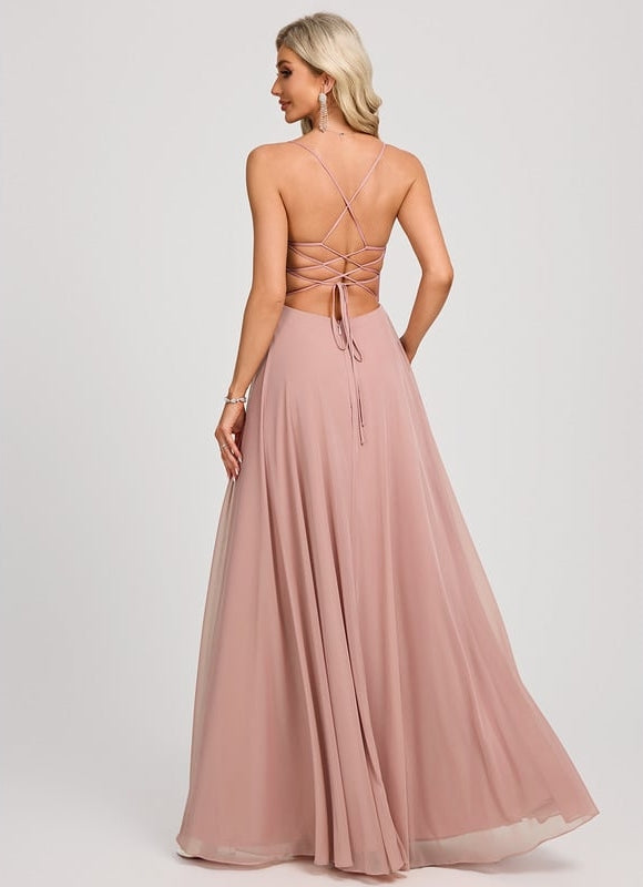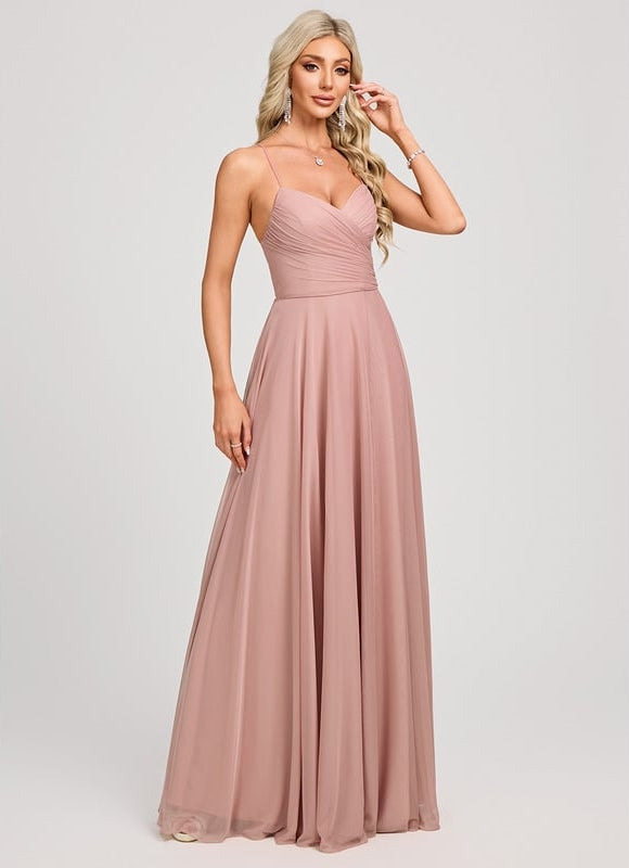 L'élégance et le confort de notre **robe de bal trapèze col V longueur ras du sol en mesh avec plissée**