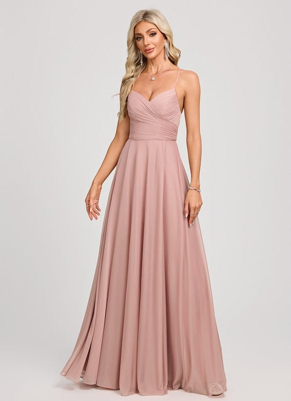 Découvrez la sublime **robe de bal trapèze col V longueur ras du sol en mesh avec plissée** qui fera de vous la reine de la soirée.